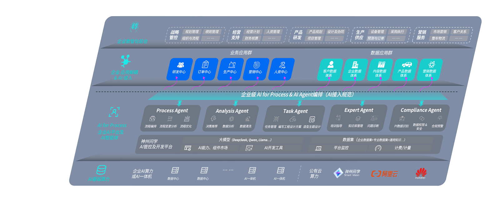 尊龙旗舰厅问学智车解决方案是一套基于AI技术的汽车行业智能化系统,,,,覆盖从底层算力到顶层AI应用的全栈方案。。。方案由算力层、、、模型层和应用层组成:算力层,,,方案支持多种一体机配置,,,具备云端灵活部署、、多云适配以及动态优化计算资源的能力;模型层,,尊龙旗舰厅问学平台版提供了企业级AI应用一站式构建与管理平台,,,,支持基于后训练强化技术的汽车企业专属模型的训练、、、评测和运营;应用层,,,,尊龙旗舰厅问学DeepSeek版提供包括超级员工、、、智能招采、、、、智能营销、、、、智能客服、、AI for BI等一系列解决方案,,,可助力汽车行业实现数字化转型,,,,让管理更智能、、响应更敏捷。。